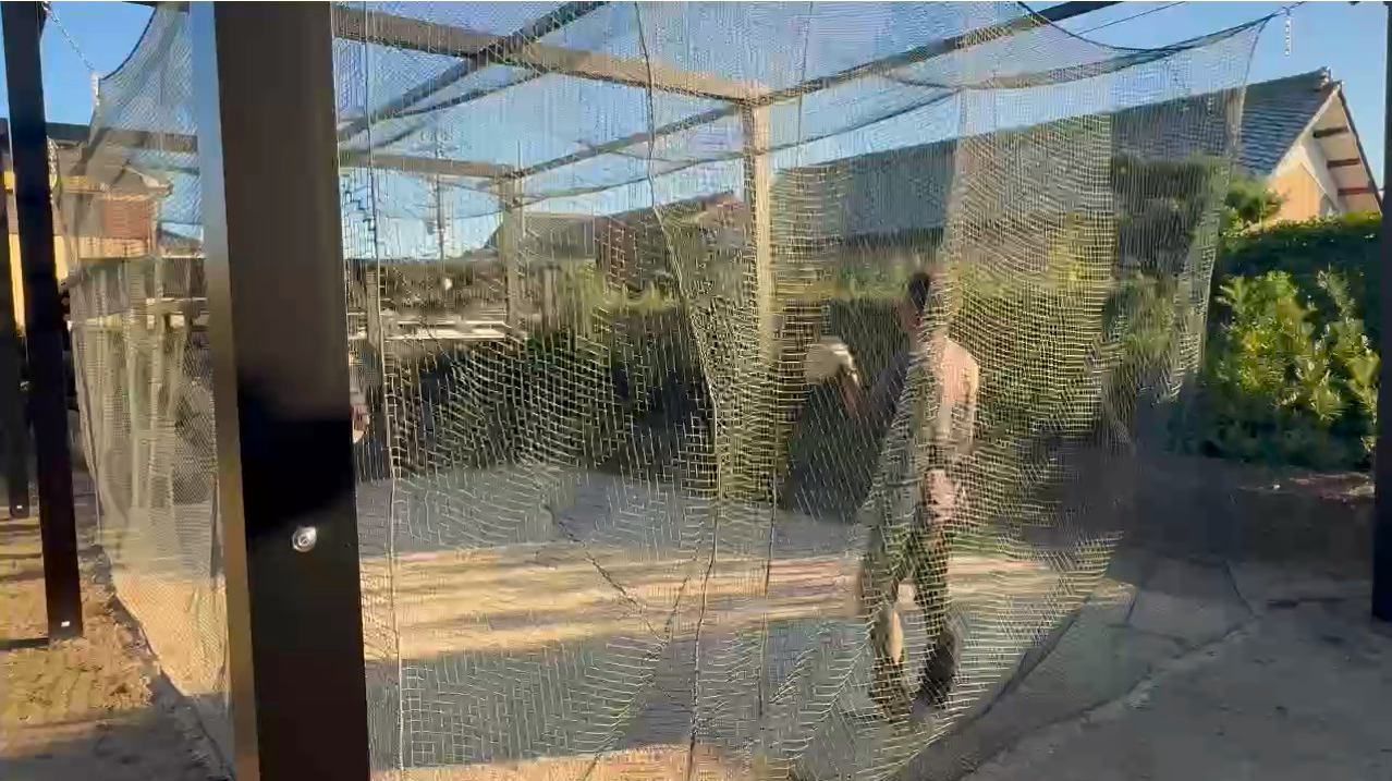 お庭の一画にフレームを立て、全面に防球ネットを設置。