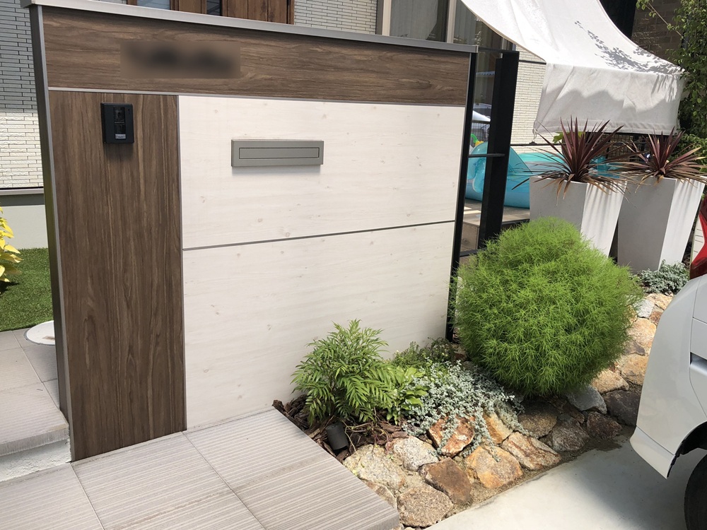 笠木や表札を加えステキな空間に仕上がっています。
