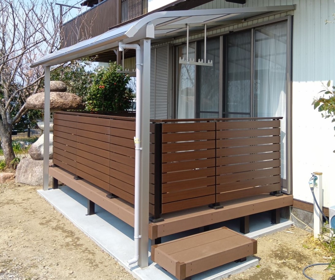 わんちゃんの遊び場、屋根付きウッドデッキ 愛西市の施工事例