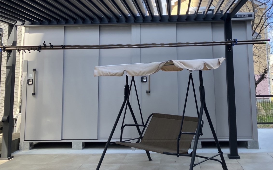 家や庭の周りを住宅やマンションに囲まれているS様邸。フェンスや物置で周囲の視線をうまくカットしながら、全天候で活用できる独立タイプの屋根を設置し、一年じゅう快適に憩える空間にリガーデンしました。庭に加えて、門扉の取り替えやサイクルポートの設置などで住空間全体が便利でお洒落に。使いやすく快適なエクステリアに生まれ変わりました。