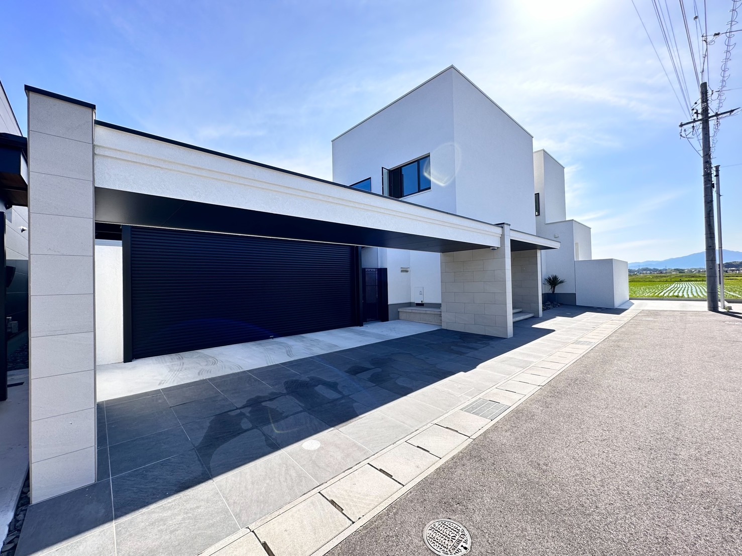 邸宅という名にふさわしい新築住宅のデザイン外構。フルオーダーメイドの大型ゲートを備えた、ラグジュアリーなエクステリアが誕生しました。大型ゲートの半分は奥にカーポートスペースが。もう半分は玄関とつながり、オシャレな浮き階段の先には存在感のある鋳物門扉が訪れる人を出迎えます。玄関横の坪庭や広いタイル貼りテラス、人工芝スペースなど、使い勝手はもちろんのこと、細部までデザインにこだわった、ほかにはない新築住宅のデザイン外構が誕生しました。
