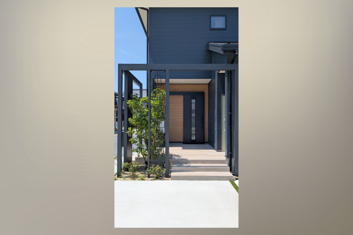 住宅新築の際、玄関まわりをオシャレで使いやすくと企画したデザイン外構事例。LIXILのエクステリア空間を自由に構成できるアイテム、プラスGを組み合わせて住空間全体をランクアップしました。Gフレームで外からの視線をさりげなくカットしたほか、鋳物パネルを組み合わせることで、住宅の外観に調和する玄関まわりに!ほかにも土間コンクリートの広い駐車スペースを設置するなど、快適に暮らせるエクステリアが完成しました。